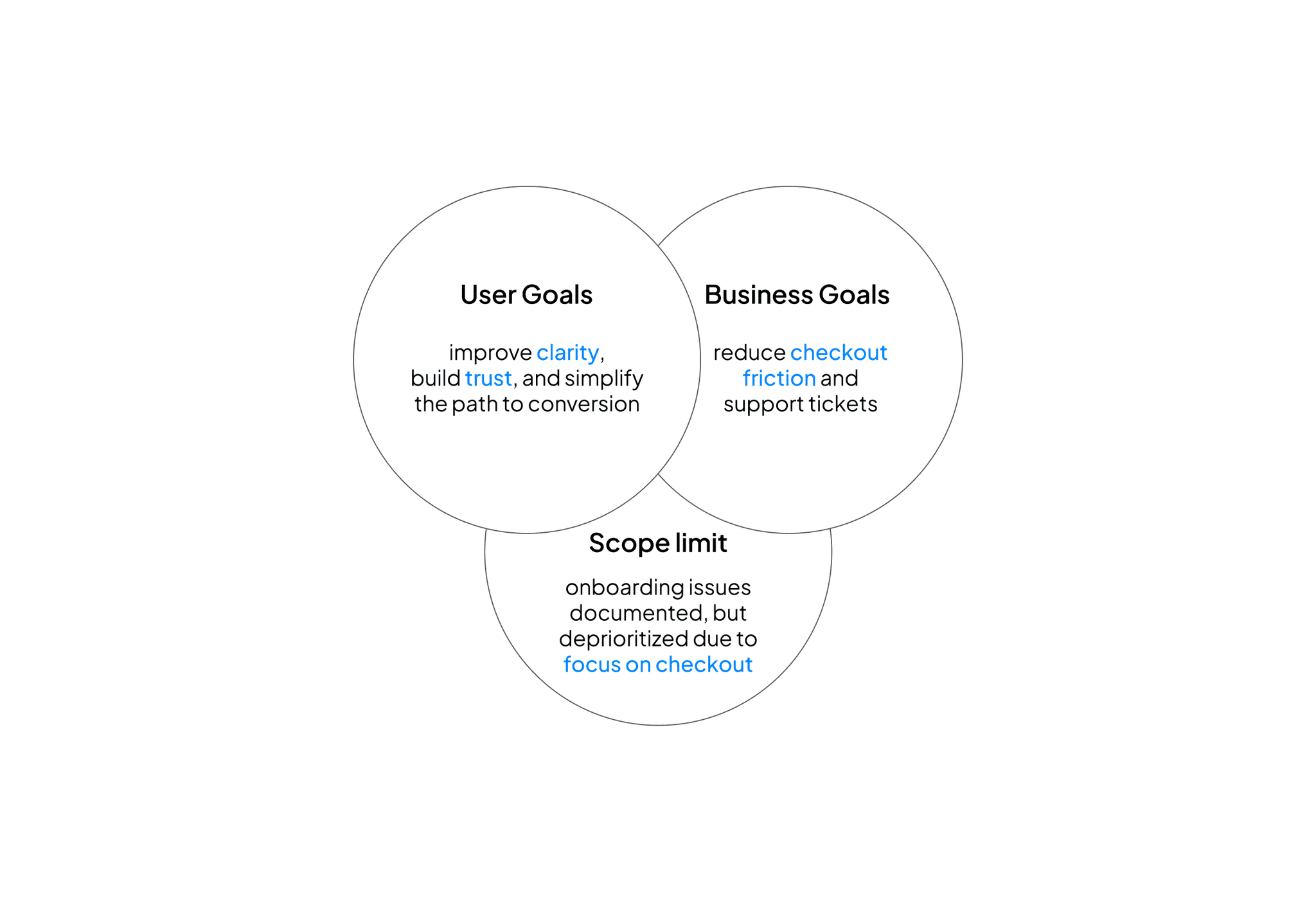 The first step was to analyze the existing checkout flow and uncover key friction points. I conducted a UX audit and combined it with insights from support ticket reviews, internal research data, and a hallway testing. This design-focused analysis helped frame the problem clearly and align the team around our priorities.